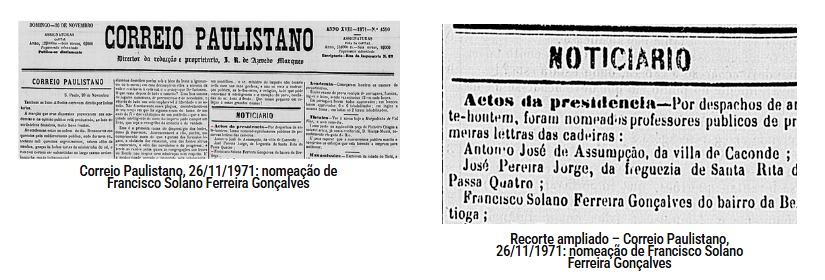 Em 1871 é nomeado um novo professor para Bertioga, Francisco Solano Ferreira Gonçalves.