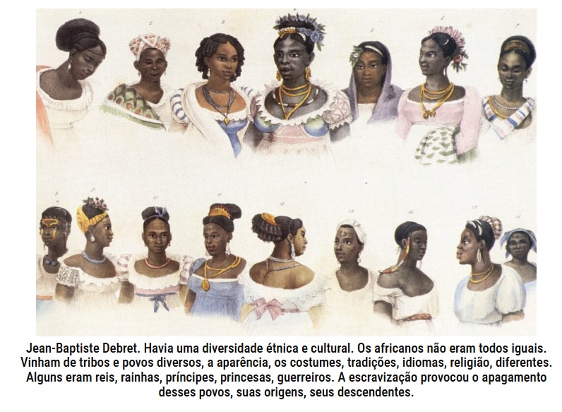 Eles eram castigados, humilhados e tratados como se fossem um objeto ou um animal. A cultura, o idioma, as tradições, os títulos, a herança, a ancestralidade, foram apagados pelo projeto de poder de um novo mundo. Rugendas e Debret, artistas, por meio de suas pinturas, denunciavam o horror.