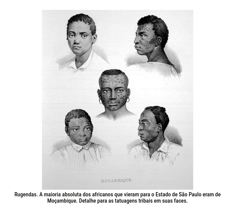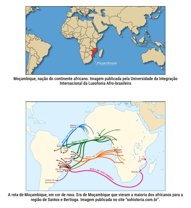 Segundo Laurentino Gomes, a absoluta maioria dos africanos que vieram para o Brasil eram de Angola e do Congo. Sete em cada dez africanos eram dessas nações. Mas vieram africanos de diferentes nações, e no caso específico do litoral do Estado de São Paulo a maioria vinha de Moçambique, no leste da África.