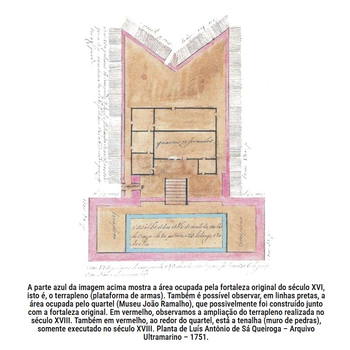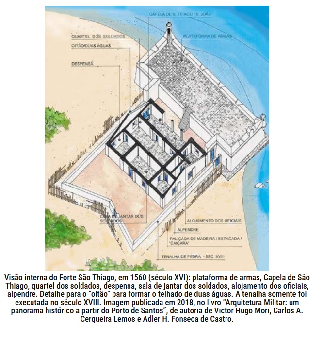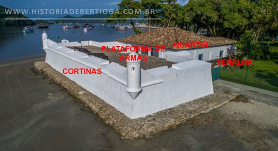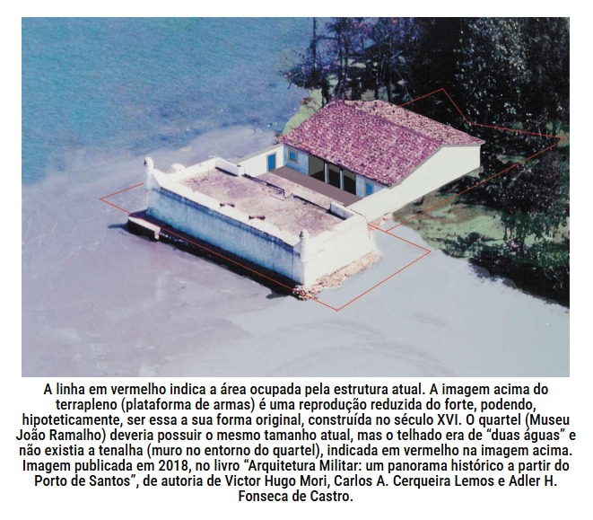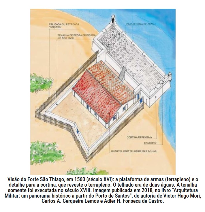 Além disso, na fortaleza construída em 1560, não existia a “tenalha”, isto é, o muro de pedras ao redor do quartel, em formato de “rabo de peixe”, que somente foi incluído em reforma posterior.
