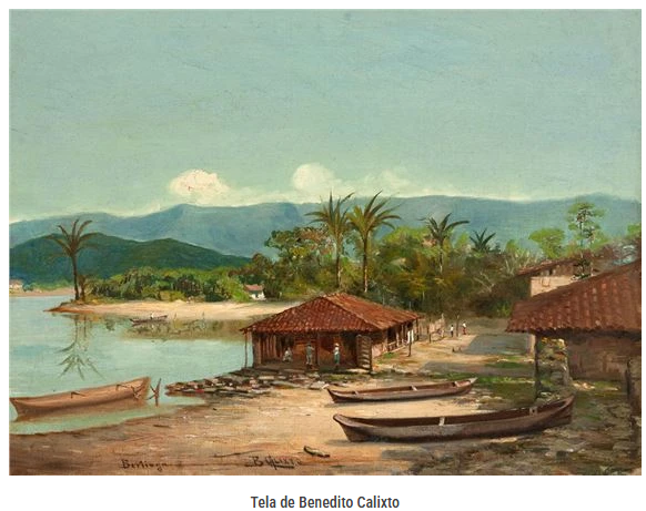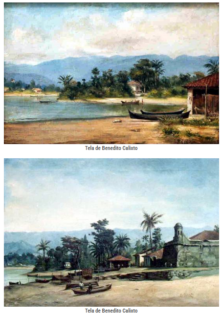 Sem possuir ainda uma “ponte de atracação”, as embarcações maiores permaneciam fundeadas no Canal de Bertioga, enquanto as canoas podiam permanecer sobre o “barranco” das margens do Canal ou recolhidas nos ranchos de pescadores, como expressou Benedito Calixto, possivelmente retratando Bertioga em 1907: