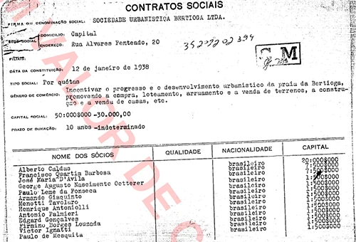 Registro na Junta Comercial do Estado de São Paulo da Sociedade Urbanística Bertioga (1938)